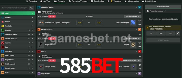 O 585bet oferece uma grande seleção de opções de apostas em e-sports com probabilidades competitivas
